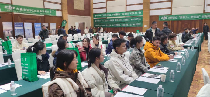 2025年11月23日,水运与航空学院无人机专业师生受邀参加贵州鑫疆农业科技有限责任公司在贵阳市花溪区迎宾馆举办的“新农人,新天地”2026年大疆农业新品推介会。来自无人机应用技术专业的十余名学生在朱世华和朱松两名老师的带领下,开展了一场兼具行业新品认知、前沿技术解读与实操体验的研学活动。