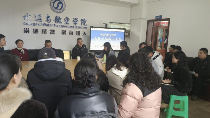 2025年12月4日,水运与航空学院在学院三楼会议室召开2025年秋季学期第三次全体干部职工大会,会议由学院党委书记安军主持,学院全体教职工参加。