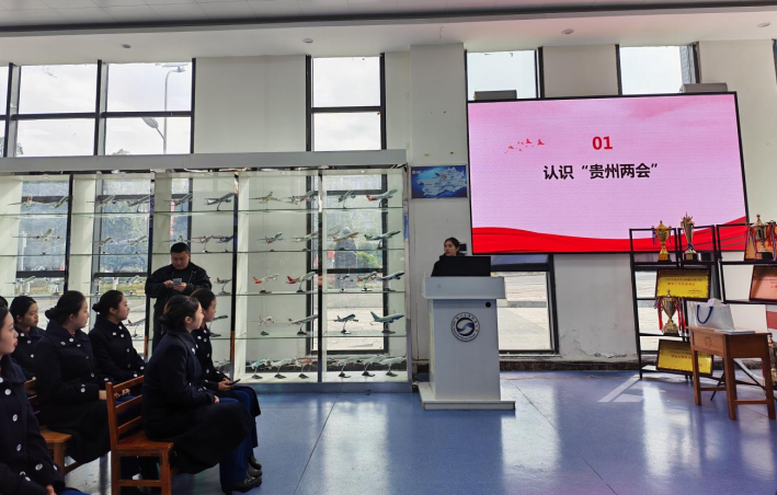 在宣讲环节,贵州饭店工作人员通过大屏展示与现场讲解的形式,向学生们系统介绍了两会的核心内涵,阐释了人大代表与政协委员的职责使命,介绍了两会的列席与旁听机制。