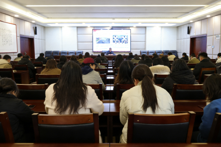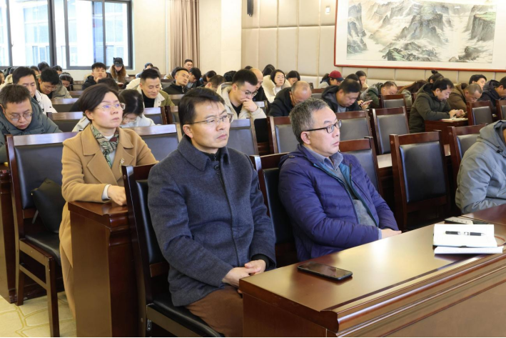 2025年12月30日,校党委常委、副校长田兴强在行政楼A区214会议室开展学习贯彻党的二十届四中全会精神宣讲。水运与航空学院、建筑工程学院、校企合作处、国有资产处、财务处、科技处等部门全体教师参加。