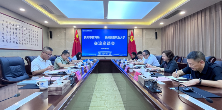 2025年9月12日,贵阳市教育局副县长级督学万乐、四级调研员张祎一行5人来我校交流座谈。座谈会由水运与航空学院党委书记安军主持,学校党委委员、副校长詹黔江出席。