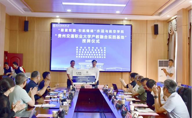 2025年9月28日,贵州交通职业大学水运与航空学院隆重举行“碧蓝双翼·引航铸魂”政、校、企合作签约仪式。水运与航空学院与贵州省乌江航道管理局、贵州省港航集团有限公司、宁德时代电船科技有限公司、珠海启航新能源科技有限公司等四家单位及企业签署五方战略合作框架协议,并现场为共建的“贵州省水运工程试验研究中心”揭牌。此次签约标志着学院在产教融合、政校企协同创新领域迈出关键一步,为服务贵州水运经济高质量发展注入新动能。