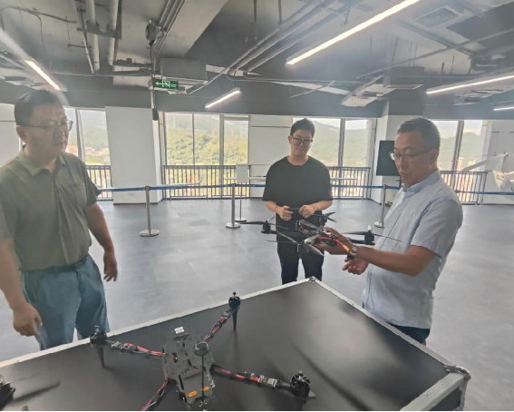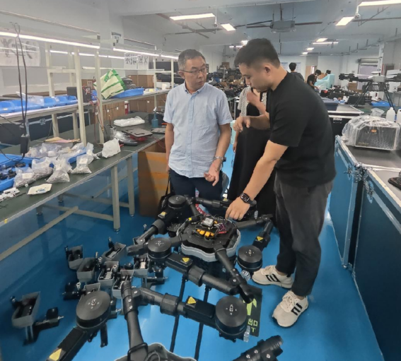 调研团队随后前往九思智能航空科技(深圳)有限公司进行考察。安军一行深入生产制造车间和测试区域,实地考察无人机生产线、质量控制体系和产品仓储情况,详细了解企业订单状况和市场布局。企业负责人重点介绍了在无人机清洗、物流运输、消防巡检等细分领域的技术解决方案,并表示目前行业急需具备无人机操控、维护及行业应用能力的专业人才。