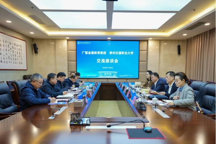2025年11月4日,广慧金通教育集团董事长焦殿成率队来我校交流座谈,我校党委书记何兴发,党委副书记、校长刘雁出席会议,会议由副校长詹黔江主持。校党政办主任徐鋆晟、水运与航空学院党委书记安军、广慧金通教育集团总经理付晓军、常务副总李青谦等参加会议。双方围绕专业发展、产业学院建设等议题展开深入研讨。