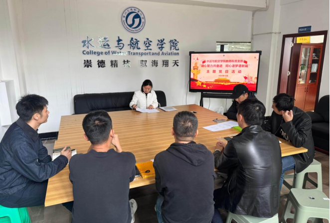 2025年10月22日,水运与航空学院教务科党支部以“凝心聚力共奋进 同心逐梦谱新篇”为主题,在学院三楼会议室组织开展十月主题党日活动,党支部书记彭爱泉主持,支部全体党员参加。
