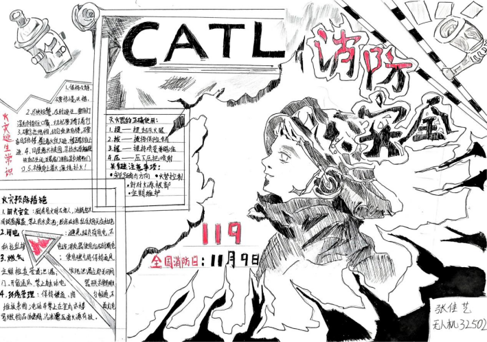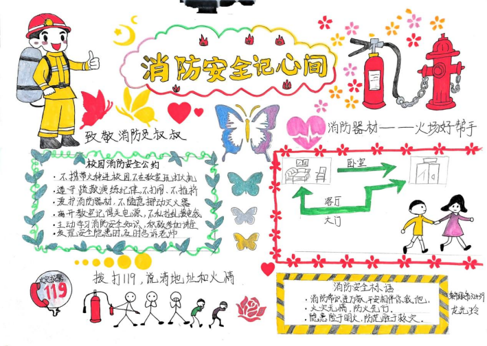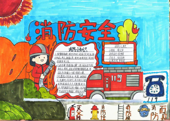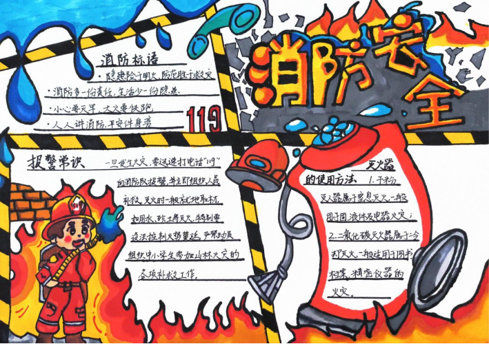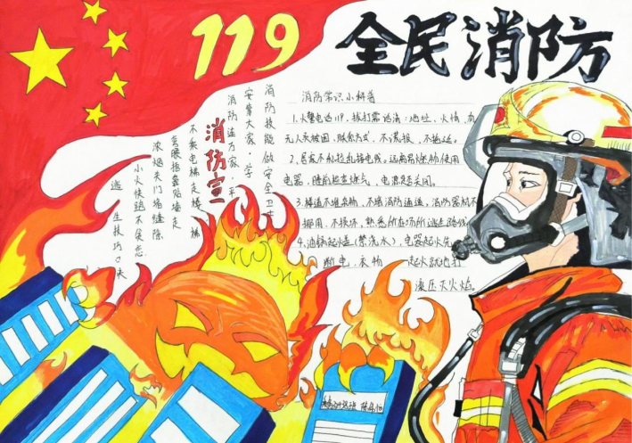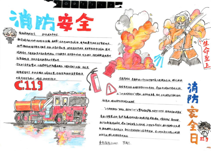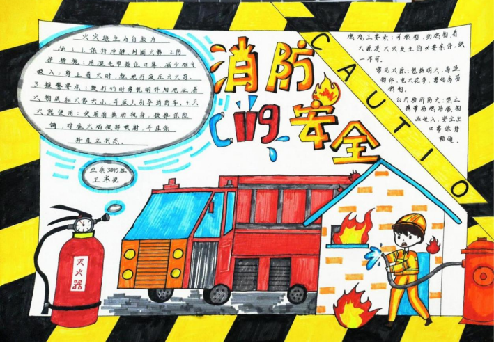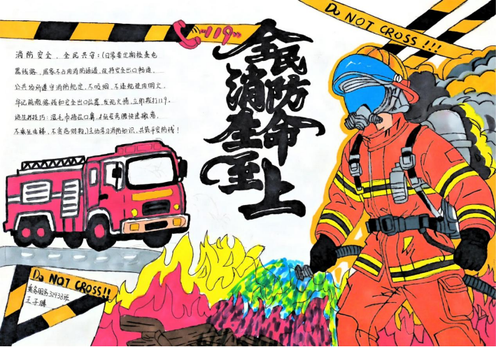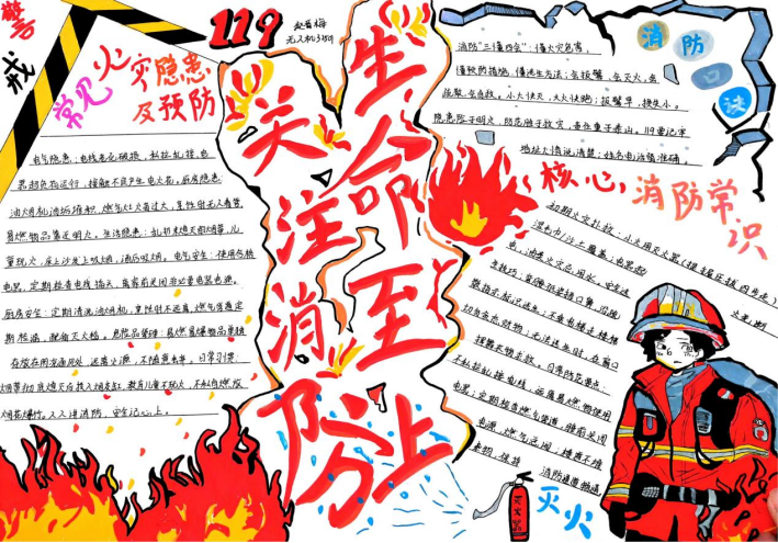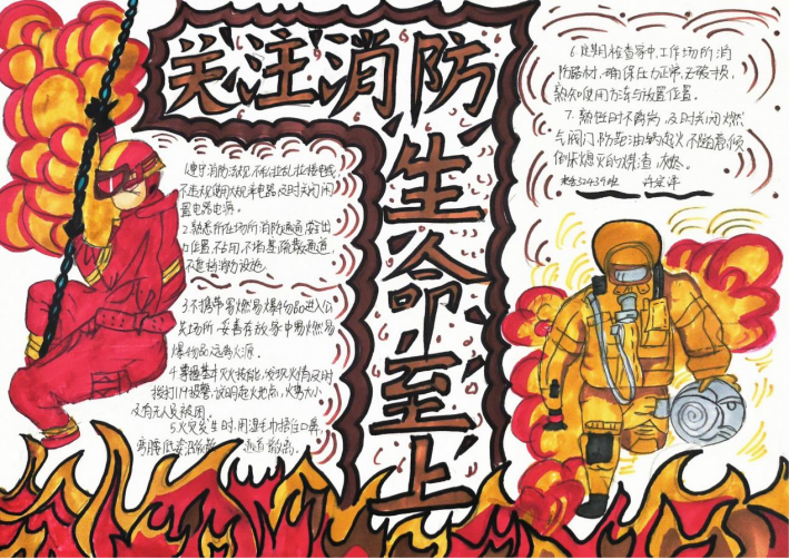 活动期间,同学们积极响应、热情投入,充分利用课余时间,围绕消防安全主题精心搜集资料、巧妙设计版面,创作出了一批主题鲜明、内容充实、设计精美的手抄报作品。这些作品图文并茂,内容丰富,不仅涵盖了防火灭火常识、各类火灾隐患的识别,还通过生动的图解形式展示了火场逃生的关键步骤,如低姿匍匐、湿毛巾捂口鼻的正确方法等,进一步巩固和拓展了学院消防宣传教育的成效,营造了“人人关注消防、人人参与消防”的浓厚校园安全文化氛围。
