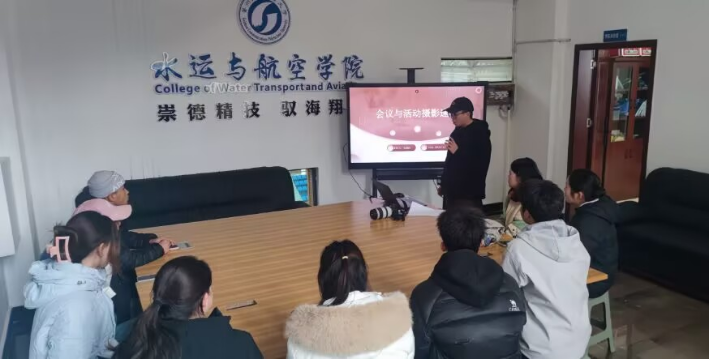 2025年12月5日,水运与航空学院碧蓝新媒体中心在学院三楼开展专项培训并就近期工作作安排。培训会由指导老师朱松主持,新媒体中心全体成员参加。